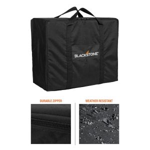 The Blackstone 22” Tabletop Griddle Cover & Carry Bag includes a protective cover and carry bag for your Blackstone 22″ Tabletop Griddle. Made with weather-resistant 600 D polyester with reinforced stitching, you’ll keep your griddle secure while storing and transporting. Transport your 22″ Tabletop Griddle to and from the campsite, tailgate party, or neighbor’s backyard with the 22” Tabletop Griddle Cover & Carry Bag!