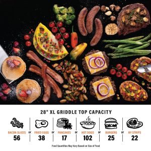 - Collapsible and vertical storage options: Lower the griddle and lock it for compact storage or store the griddle upright with the side shelf kickstand