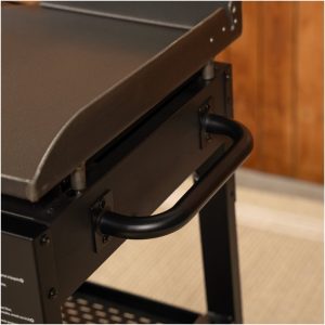 - Side shelf with side shelf hooks: Added prep space with easy access to your cooking tools on the side shelf hooks.