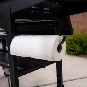 - Dual folding side shelves with side shelf hooks: Added prep space with convenient and compact storage, and easy access to your cooking tools on the side shelf hooks.