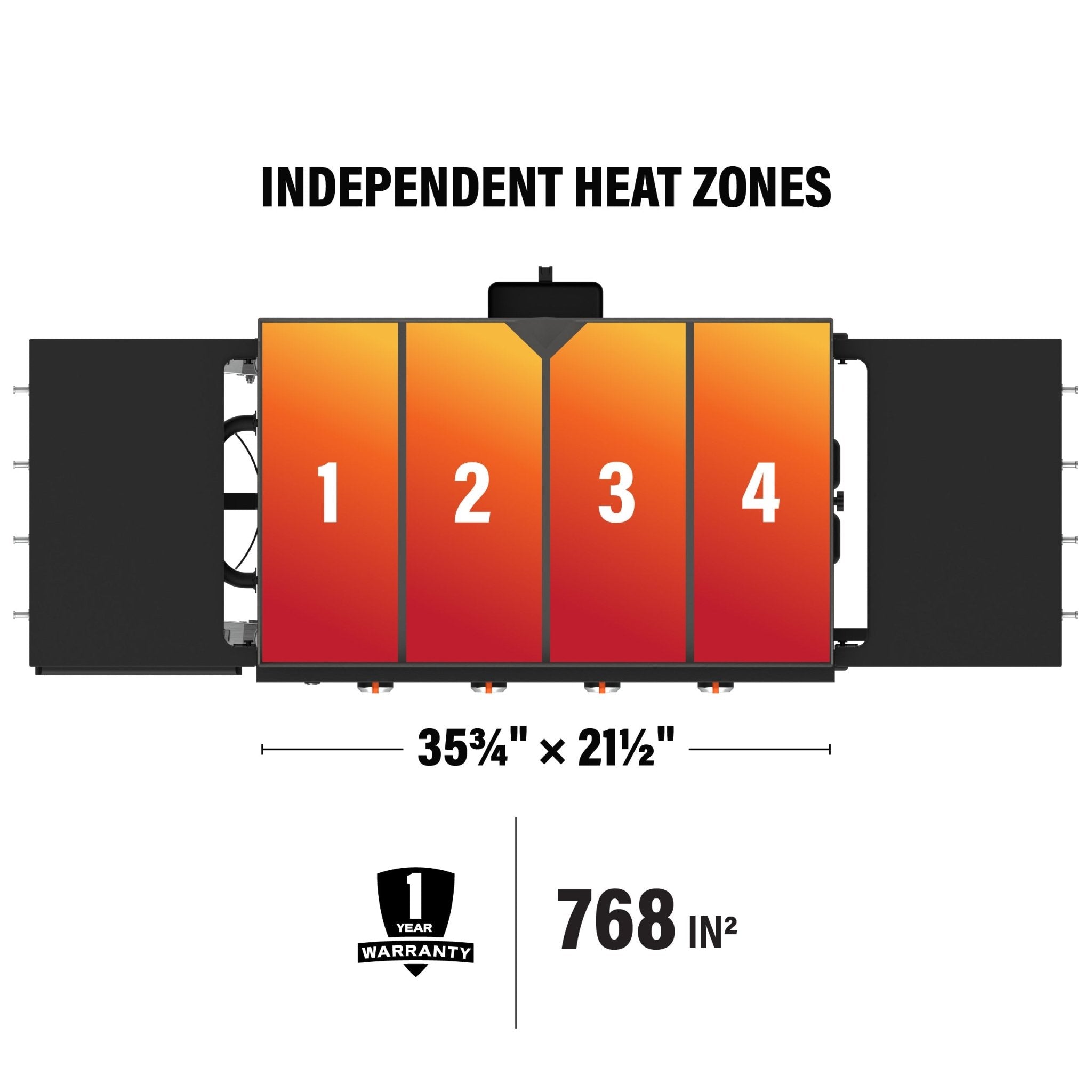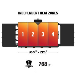 - Four independently controlled heat zones: Cook a variety of dishes side by side at different temperatures.