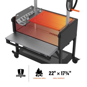 - Dual folding side shelves with side shelf hooks: Added prep space with convenient and compact storage, and easy access to your cooking tools on the side shelf hooks.