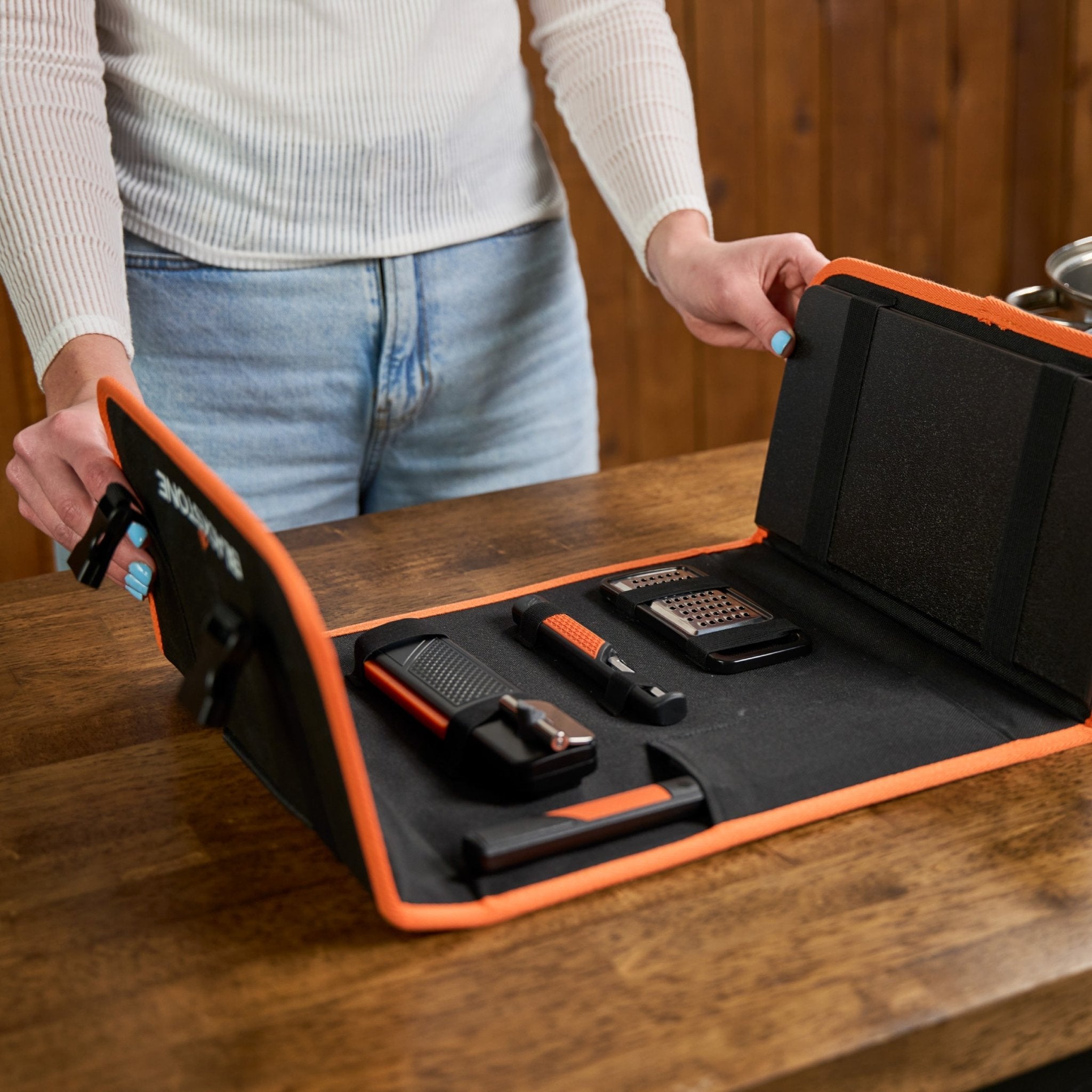 Keep all your camping essentials at your fingertips so you can Cook Anything, Anytime, Anywhere® with the 6 Piece Camping Kit! Must-have tools like the peeler, grater, and the can & bottle opener combo have you covered for any mealtime. Save space with the folding cutting board and prep any meal with the 6” chef knife. When mealtime is over and it’s time to pack up the adventure, easily stow the kit away and carry it to your next destination with the carry case!