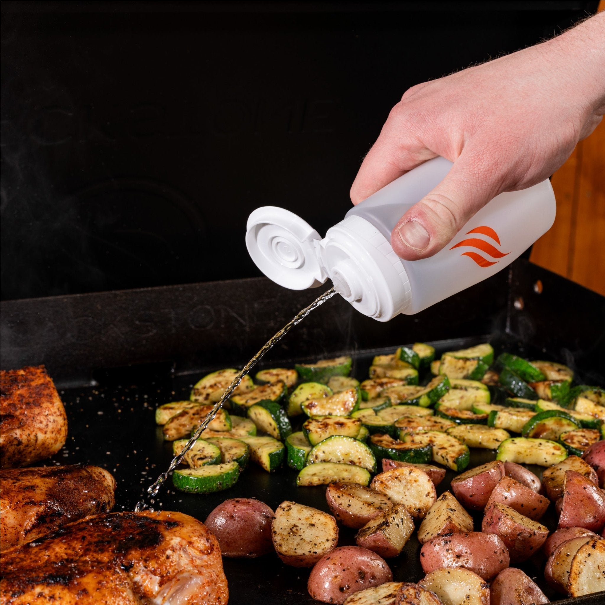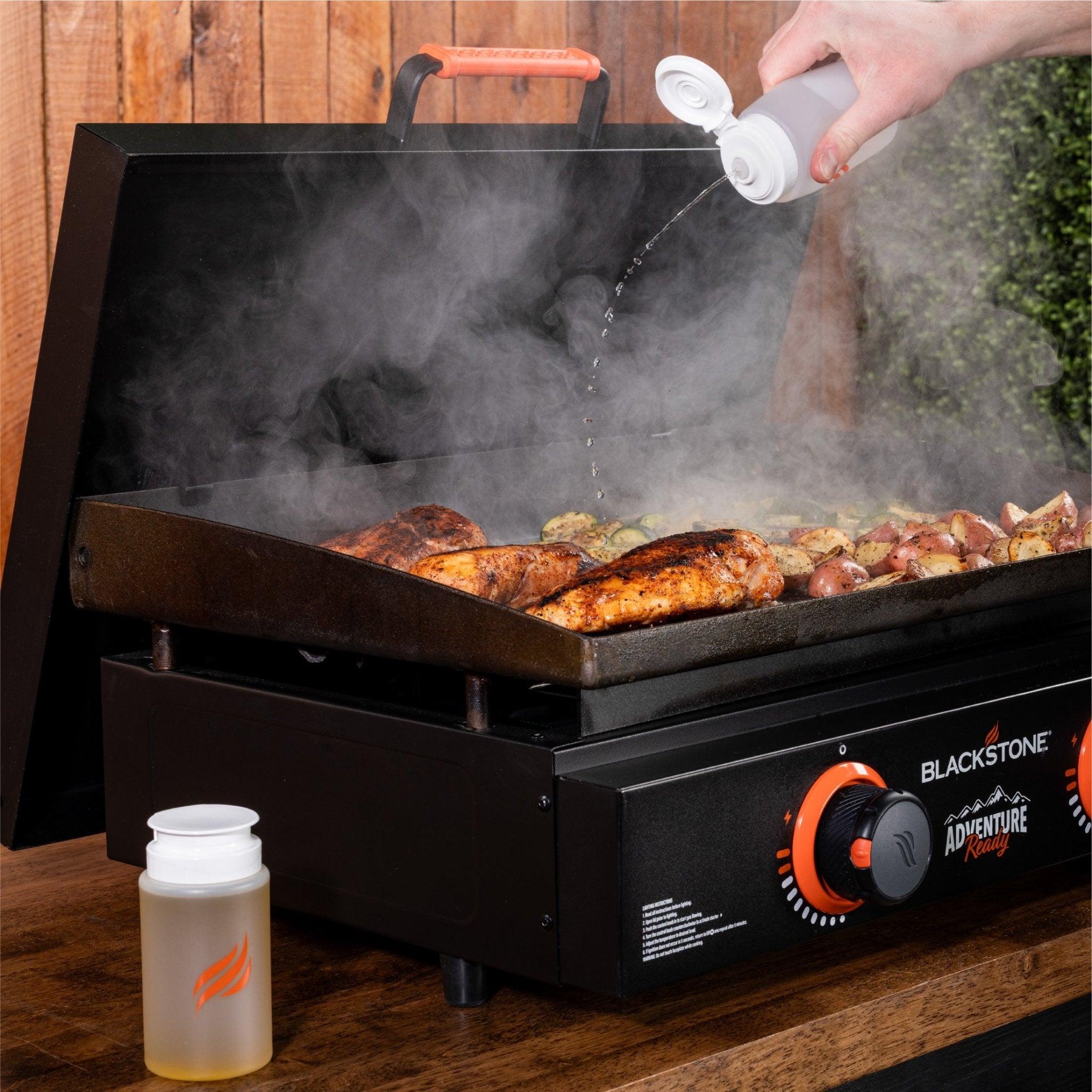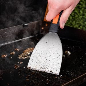 Keep your griddle clean wherever you are with the Blackstone Cleaning Kit. The kit includes a stainless-steel scraper, two 8 oz. leak-resistant bottles, and three orange scrub pads with a scrub pad handle. The compact design ensures you can take your cleaning accessories with you on any adventure. Use the scraper on non-coated griddle tops to remove stuck on food and the leak-resistant bottles are perfect for cooking with oil and water on the go. For tough messes, use the scrub pads and handle, so you can quickly get back to your adventure. Worry less about the mess and Cook Anything, Anytime, Anywhere® with the Blackstone Cleaning Kit!