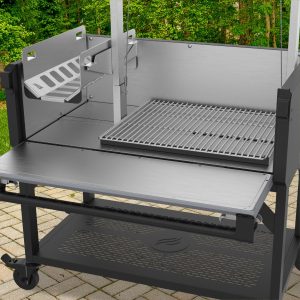 - Brasero feature: Burn logs into coals for steady heat and smoky flavor.