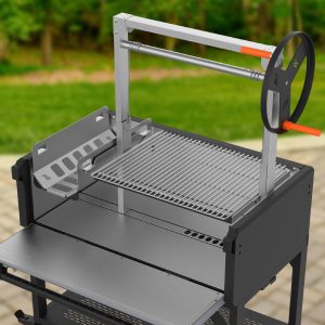 - Locking crank wheel: Easily adjust the height of the grill and lock it in place.