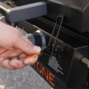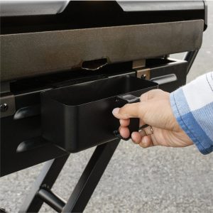 - Securing hood latch locks down the hood to keep your griddle safe during travel.