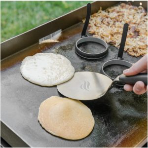 Elevate your breakfast experience with the Deluxe Griddle Kit. You’ll have all you need to make your favorites right at home including a batter mixer, two stainless-steel spatulas, a set of tongs, a pancake spatula, and three egg rings. The dishwasher safe design makes for an easy cleanup when you’ve finished, so you'll always be ready to craft delicious crepes, eggs, omelets, pancakes, and more!