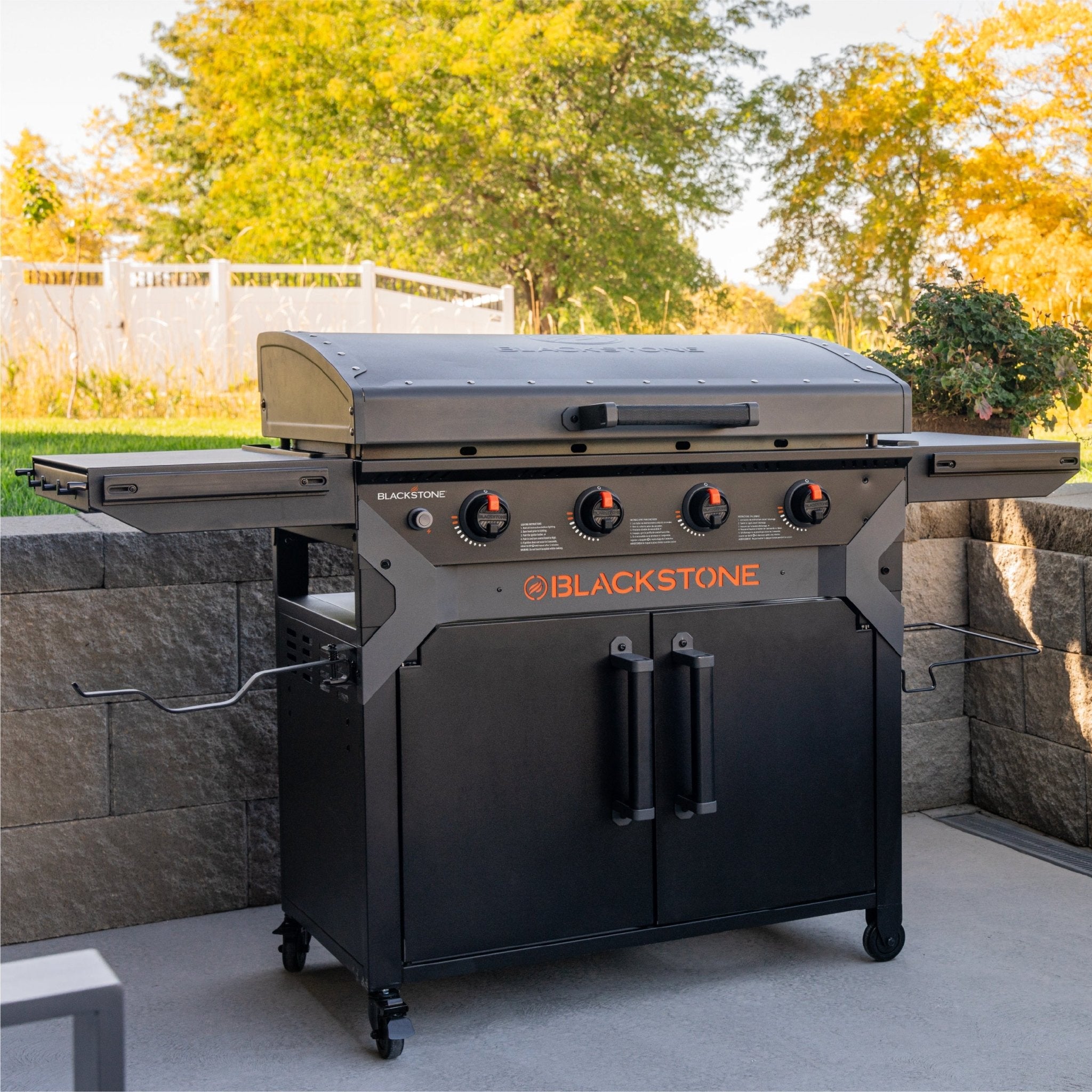 - Propane storage cabinet keeps your tank tucked away with room for your griddle gear.