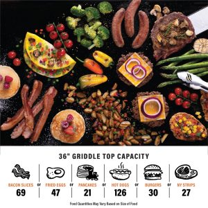 - Rear Grease Management makes cleanup easy by directing grease to the back of the griddle.