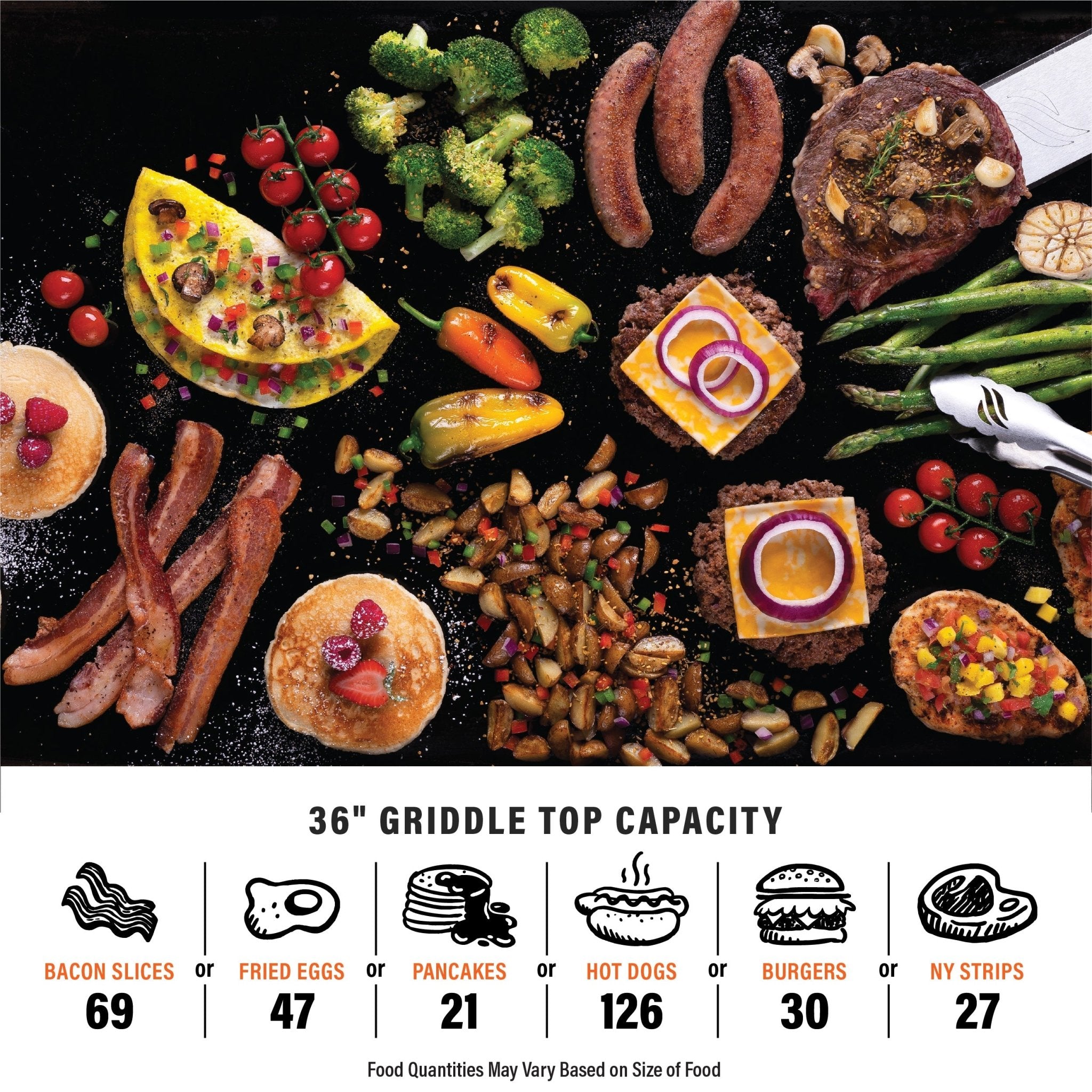 - 36” Omnivore Griddle Plate with even heat distribution, higher fuel efficiency, and built-in wind guards.