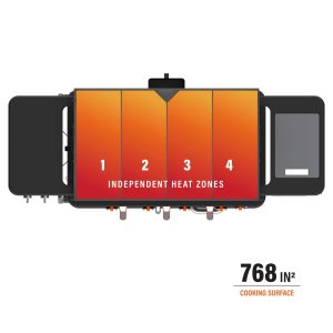 • Four independently controlled main cooking zones with a total of 60,000 BTU's -plus 13,000 BTU's of additional performance on Air Fryer burner.