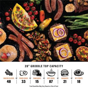 - Rear Grease Management makes cleanup easy by directing grease to the back of the griddle.