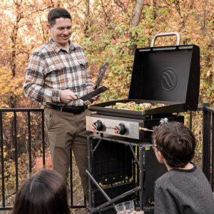 Cook restaurant-quality food, wherever you end up with the 22” Tabletop Griddle Bundle. With two independently controlled heat zones and Rear Grease Management, you’ll cook delicious meals quickly and conveniently and have an easy cleanup once everyone is full. The built-in hood will protect your griddle when not in use, and the included carry bag and bulk tank adapter are perfect additions to your outdoor cooking setup!
