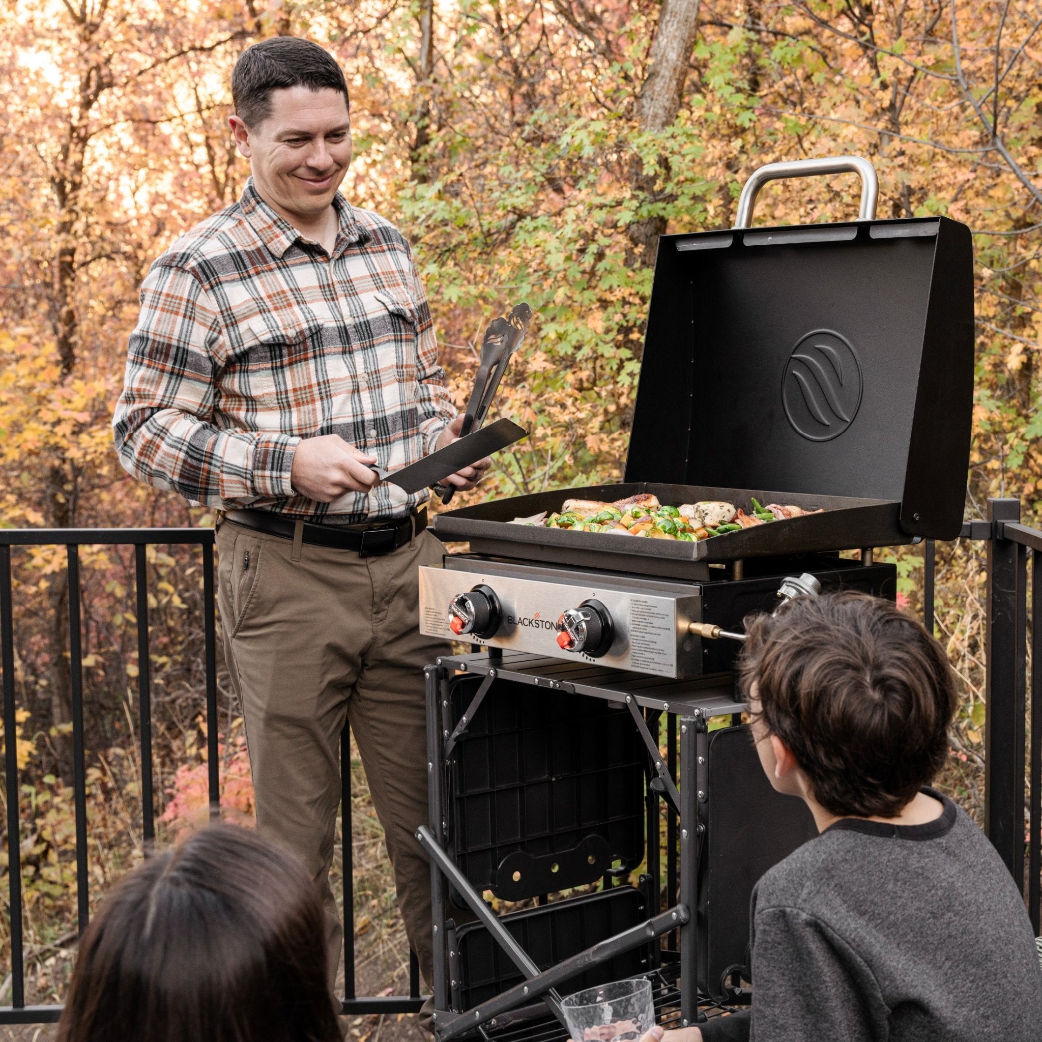 - Built-in hood keeps your griddle surface protected and clean.