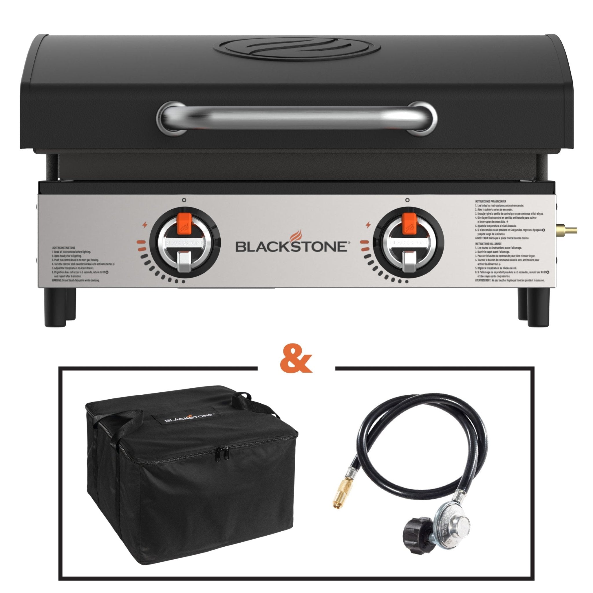 - Bundle includes Original 22” Tabletop Griddle with Hood, 22” Tabletop Griddle Carry Bag, and bulk tank adapter with regulator.
