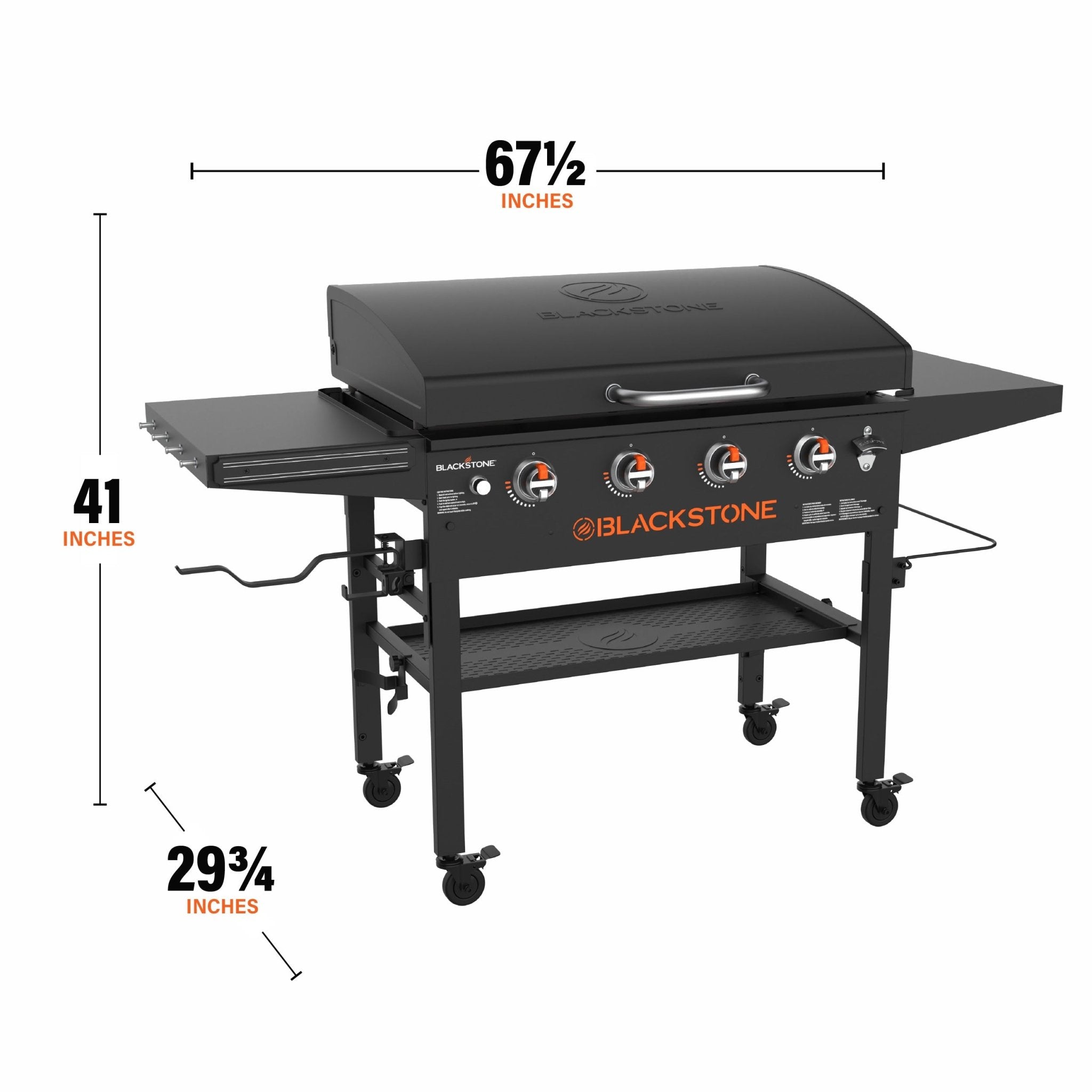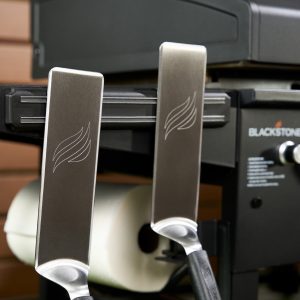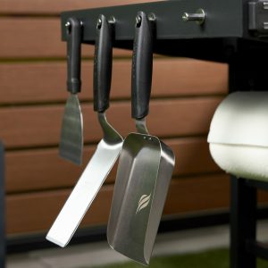 - Dual folding side shelves with side shelf hooks: Added prep space with convenient and compact storage and easy access to your griddle gear.