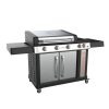 - Rear Grease Management makes cleanup easy by directing grease to the back of the griddle.