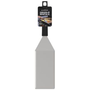 Flip, scrape, spread or mix foods with the Blackstone Griddle Spatula. This spatula is made with stainless steel to increase strength so it can handle whatever you need it to. Designed with a beveled edge, the blade is ideal for helping food slide onto the spatula, or for scraping your griddle top clean of food debris. The spatula handle is both heat and slip-resistant so you can keep a comfortable, secure grip as you spread food across your griddle surface. An extra-long spatula blade is built to move large amounts of loose food, like rice or stir fry noodles, with minimal effort so your hands don’t wear out as quickly. Hang this spatula up using the hanging loop at the end of the handle to ensure your spatula is handy the next time you need it.